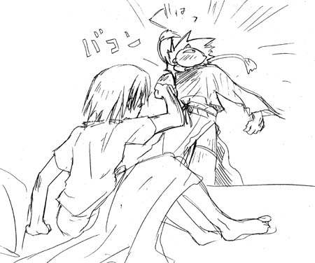 やっぱり殴られる。 つか、服・・・ 手ェ抜いちゃった。