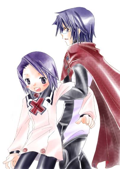 「SUMMON NIGHT」 「3」発売カウントダウン企画(?)2枚目。 ネス・トリス 好きなのに、書くのは実は苦手です。未だにトリスの髪型が 良く分かってないのです・・・。 なんか、崖(?)から落ち掛けた・・・ってシチュエーションです。 「キミって人は・・・・全くもう・・・。」