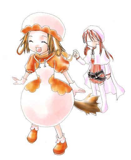 「SUMMON NIGHT」 「3」発売カウントダウン企画(?)6枚目。 どうゆうわけか、モナとアティです。 いやさ、やっぱり主人公を描かねば、と思ったのですが、そもそも この企画を始めるときに、最後はモナティだ!と思ってたのでサ。